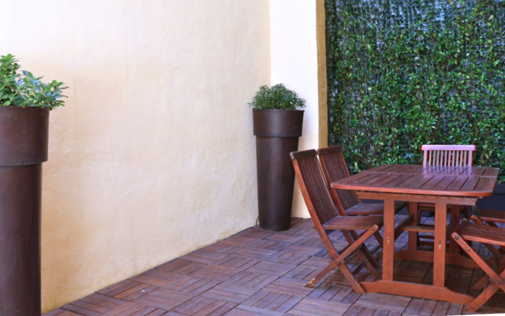 Ampia terrazza ad uso esclusivo, perfetta per godersi momenti di relax in totale privacy. Troverai un ampio tavolo da esterno, ideale per colazioni all’aperto o cene sotto le stelle. Completano lo spazio una poltrona di design e una fontanella privata.